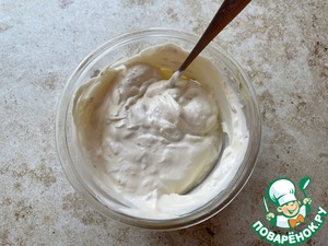 • Для приготовления соуса соединить сметану, майонез, горчицу, натертый маринованный огурец, перемешать до однородного состояния.