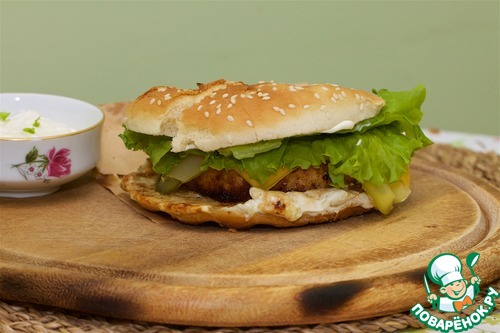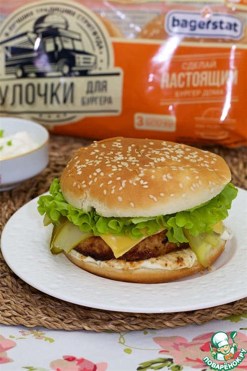 Предлагаю приготовить гамбургер с сочной котлетой, приготовленной из филе птицы с грибами, сыром и карамелизированым луком, дополним вкус белым соусом и вкусной булочкой для бургера с кунжутом от Bagerstat. Это просто очень вкусно и точка.