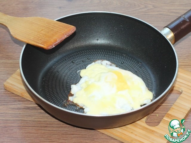 6. Смажьте сковороду растительным маслом и поджарьте 1 яйцо.