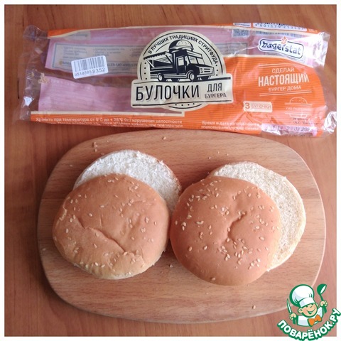 В быстром приготовление нам очень помогут готовые булочки для бургеров Bagerstat. Они мягонькие, нежные и очень вкусные!