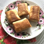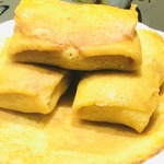 Сыворотки у меня в пакете из-под моцареллы - 150 мл. Я её разбавлю молоком - 50 мл. Смесь должна быть тёплой. Гасим в ней соду, ждём реакцию на кислую среду. Добавляем сахар. Я возьму 1 ст л. Я люблю блины сладковатые даже с несладкой начинкой. Разбиваем крупное яйцо и ручным венчиком соединяем смесь. Просеиваем муку и добавляем соль. Муку выкладывайте постепенно. Тесто должно быть жидким для тонких блинов. Тщательно вымешиваем тесто, чтобы не было комочков и добавляем подсолнечное рафинированное масло, соединяем. Масло нужно в тесте для того, чтобы не подмазывать сковороду для выпечки каждого блина. Греем сковороду. Моя сковорода D - 22 см, антипригарная. Разливаем тесто по всей поверхности сковороды тонким слоем, наклоняя её в разные стороны. Блины сильно зажаривать не нужно, мы в завёрнутом виде с начинкой будем их обжаривать в сливочном масле со всех сторон. Снимая каждый блин со сковороды на тарелку, накрываем сразу колпаком, чтобы краешки блинов не подсохли до заворачивания в них начинки. Из количества этого теста получилось 5 шт блинов D - 22 см.