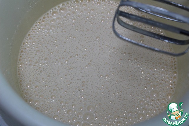 Всыпать муку с разрыхлителем и перемешать на низкой скорости.