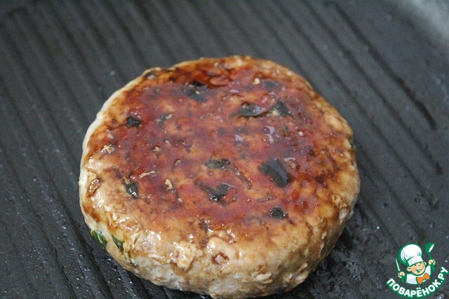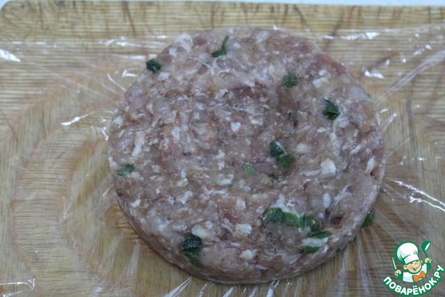 Сформовать котлету диаметром чуть больше диаметра булочки. Удобнее на пищевой пленке.