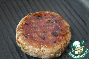 Смазываем с двух сторон маринадом и обжариваем на гриле - у меня сковорода гриль.