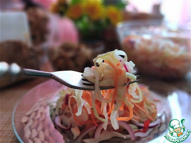 Сальвадорская маринованная капуста "Сurtido". Закуска напоминает классическую квашеную капусту, но с интересными ингредиентами. Делается очень быстро, чем традиционная квашеная капуста. Рецепт повстречала в интернете и он меня очень заинтересовал. Пришёлся по душе. Пробуйте, я думаю, что вам он должен понравиться.