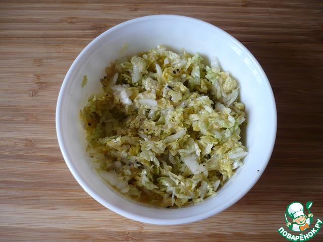 • Мелко нарежьте пекинскую капусту.