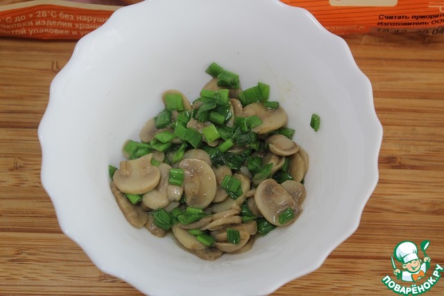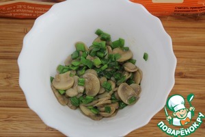 Грибы порезать и вместе с зеленым луком обжарить в 1 ст л сливочного масла.