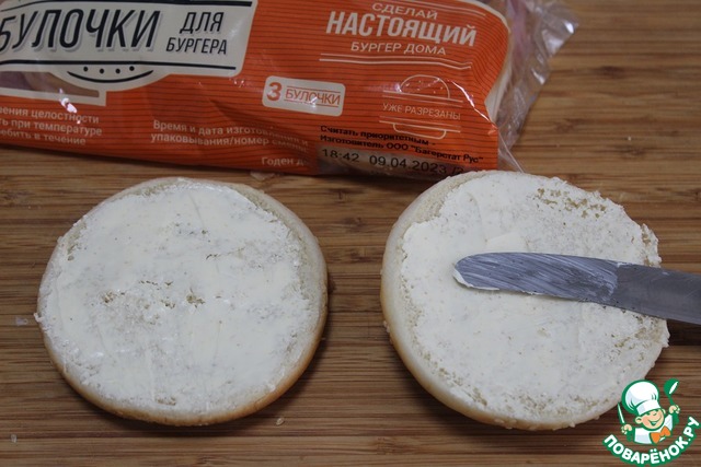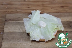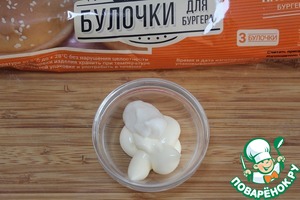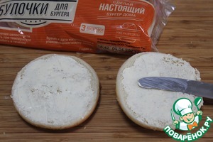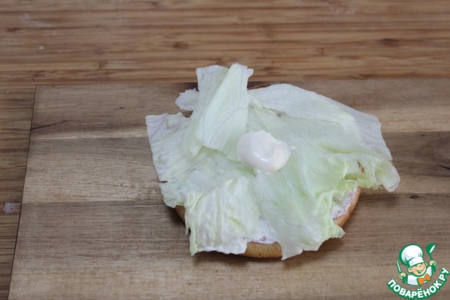 Выкладываем на нижнюю половину булочки немного соуса с хреном.