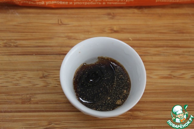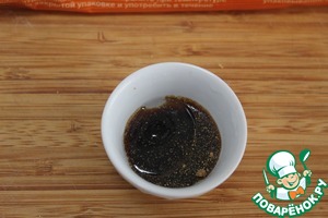 Соевый соус смешать с водой и растительным маслом. Все по чайной ложке.