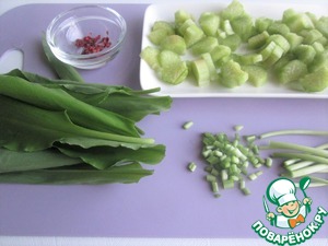 Ингредиенты для «Омлет с черемшой и ревенем»: