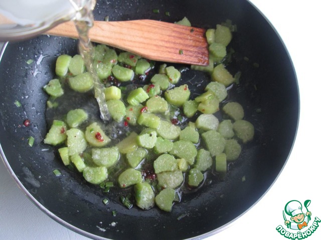 Снова перемешать и дать упариться 2-3 минуты. На этом этапе ревень желательно попробовать, он должен размягчиться и приобрести вкус добавленных специй.