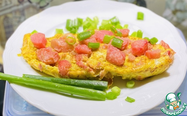 Рецепт с таким названием встретился у автора Ники Белоцерковской. Я благодарю её за рецепт и предлагаю вам этот интересный вариант омлета.