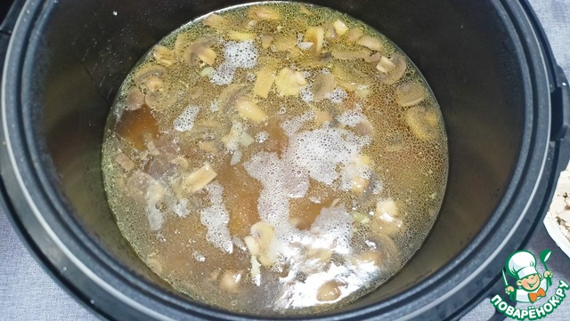 Добавляем в чашу бульон и картофель - Режим "Тушение/Суп" 25 минут.