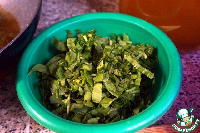 У щавеля отдельно порезать стебли – они пожестче, их нужно будет запускать раньше.