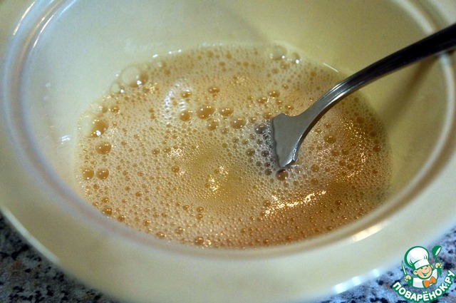 Яйца разбить в миску, взбить вилкой до образования пены.
