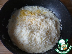 • В сотейнике на умеренном огне нагрейте молоко и влейте в него жирные сливки (но не кипятите). Затем добавьте тёплое молоко со сливками в сковороду с мукой и сливочным маслом и всё хорошо перемешайте. Доведите до кипения и варите, помешивая, около 10 минут. Добавьте в молочную смесь сыры натертые на мелкой терке и мешайте, пока сыр не расплавится, 2-3 минуты (не доводите до кипения).