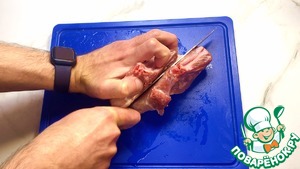 После чего приправляем свинину солью, черным молотым перцем, приправой для мяса.
