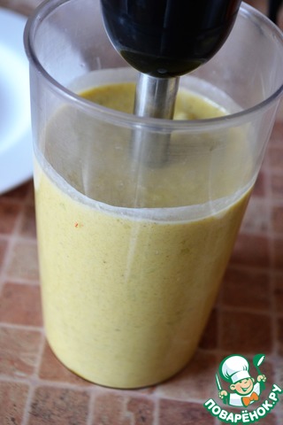 В чашу блендера всыпать корицу и куркуму, влить кокосовое молоко, добавить нарезанные манго, банан и имбирь. Измельчить до однородности.