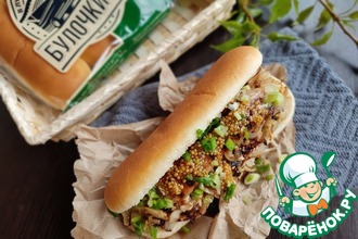 Равномерно распределить начинку по булочке, добавить жареные луковые хлопья, или луковый порошок.