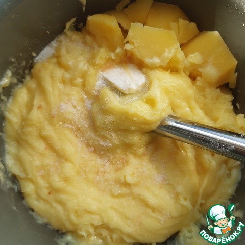 Картошку взбить с молоком и маслом погружным блендером до воздушности.