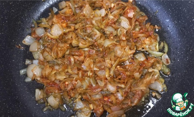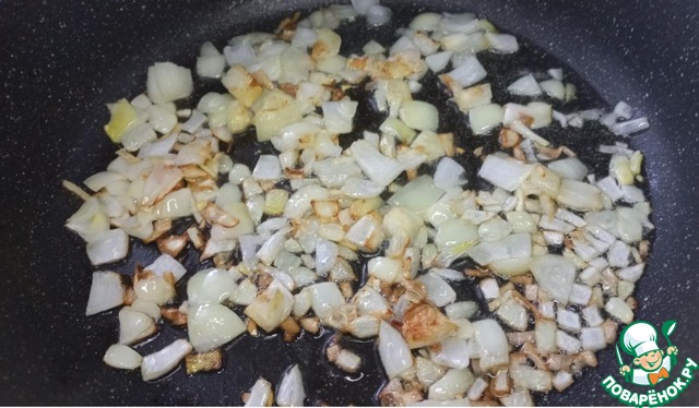 Репчатый лук очищаем, нарезаем на кубики или полукольца. Выкладываем на предварительно разогретую сковороду с добавлением растительного масла. Обжариваем до мягкости и золотистого цвета.