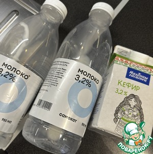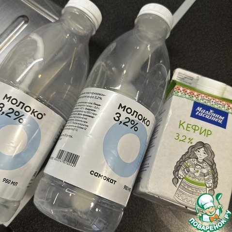 - Кефир (Жирность 3,2%. Срок годности не более 10 суток) — 1 л