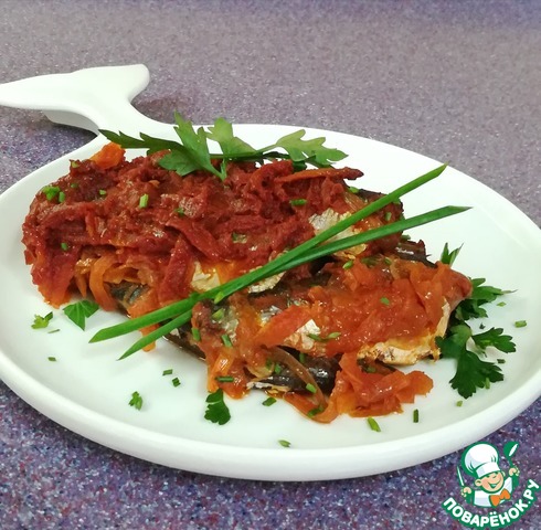 Рецепт «Салака в томатном соусе с овощами»: