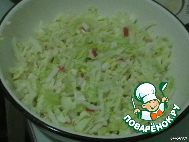 Легкий и вкусный салатик на праздник и после праздника. С пекинской капустой и крабовыми палочками.