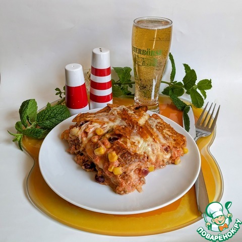 Попался мне в интернете такой вариант лазаньи, а так как мои сыновья любители "Чили кон карне", была уверена, что им понравится. Готовится быстро, получилось вкусно, семья оценила, за это благодарю автора за отличный рецепт! Порция получается большая, мы вчетвером не осилили за раз.