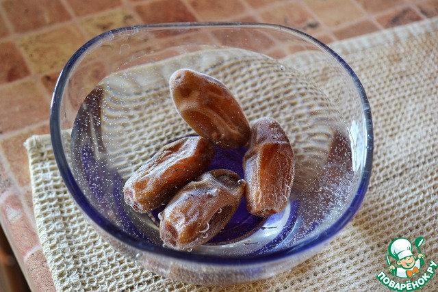 Финики замочить в холодной воде на 1-2 часа.