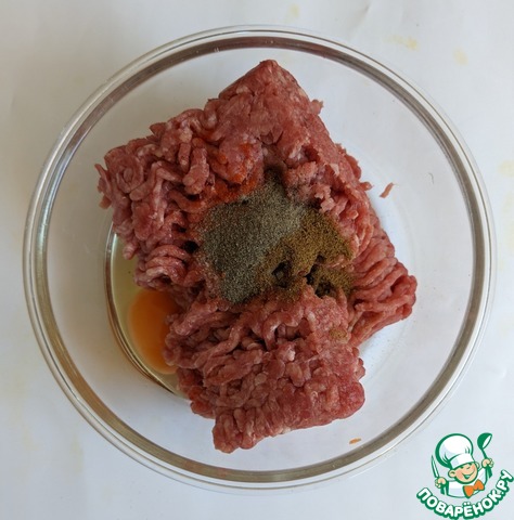 • Тем временем приготовить фарш, добавив яйцо, соль, черный и сладкий перец, и зиру, хорошо вымешать.