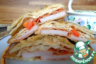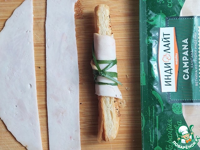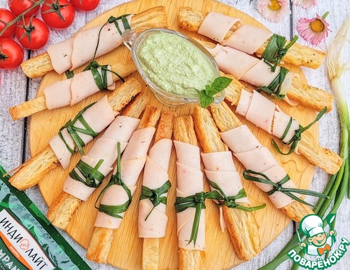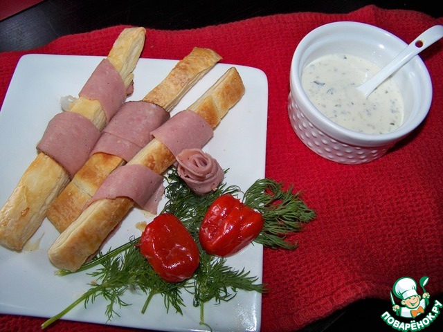Слоеные палочки с ветчиной и соусом