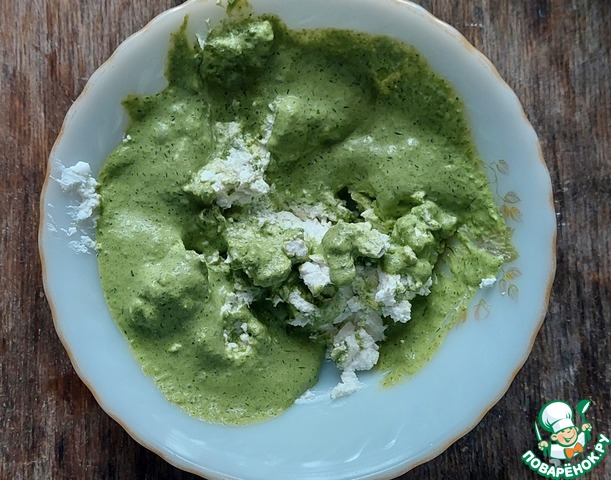 Получившуюся массу соединить с брынзой. Хорошо перемешать, соус готов.