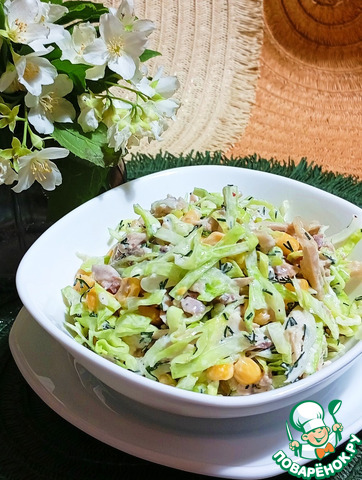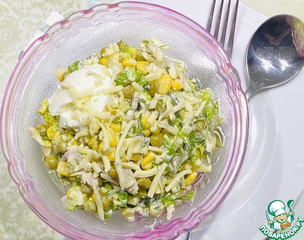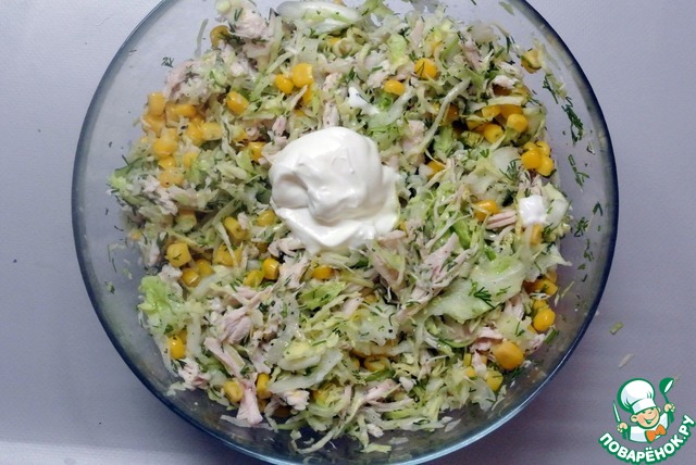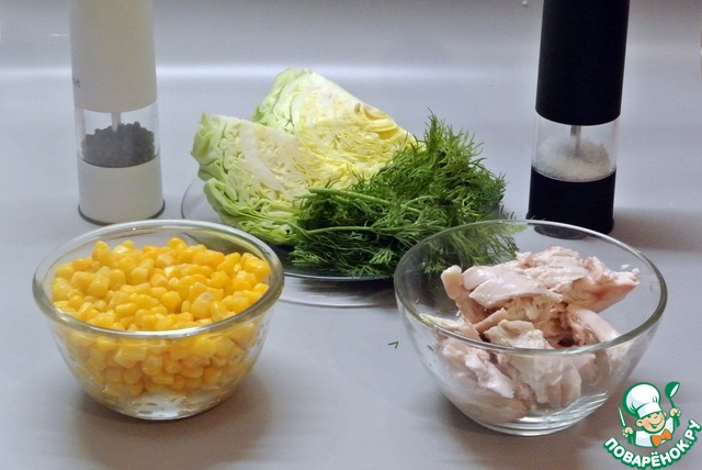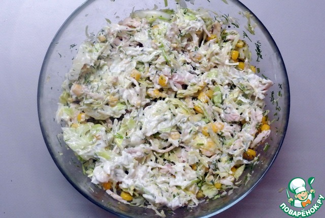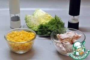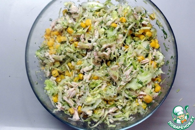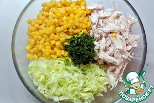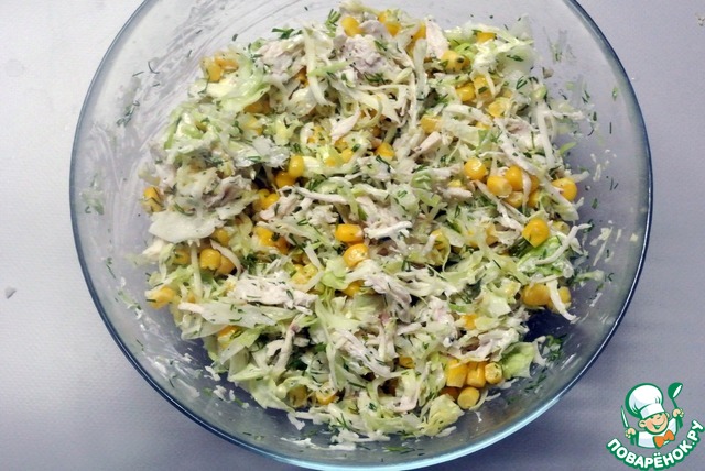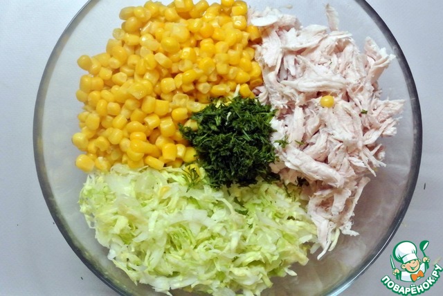 Рецепт «Салат из курицы, капусты, сыра, кукурузы»: