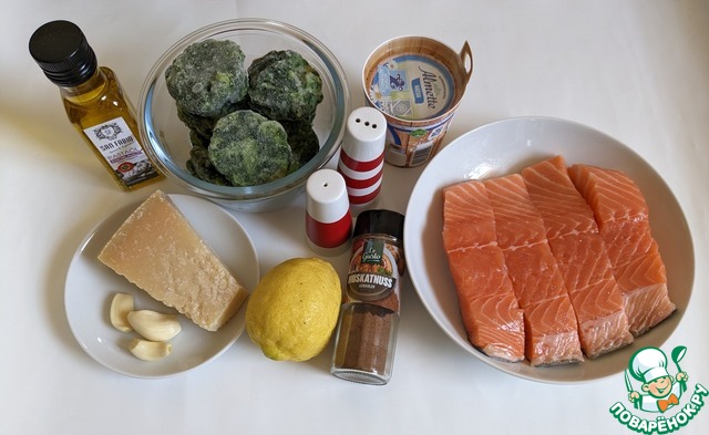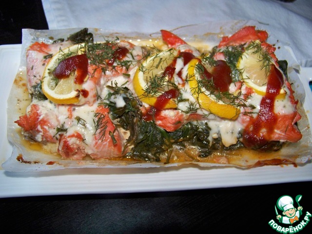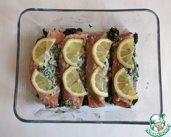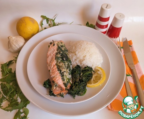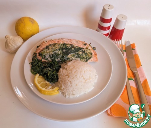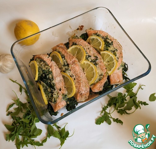 Ингредиенты для «Кармашки из лосося со шпинатом»: