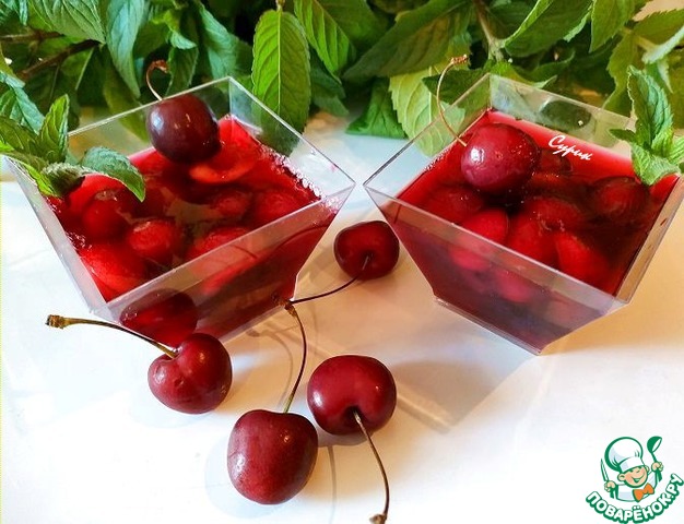 Минимум калорий (30 гр на порцию)- максимум наслаждения! Еще один вариант легкого десерта без вреда фигуре и здоровью! Легкая кислинка каркаде, сладость черешни, аромат ванили - это вкусно! А в жаркие дни это просто наслаждение. За идею благодарю la perla.