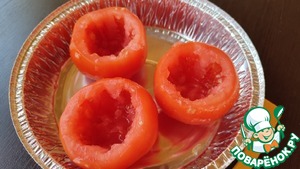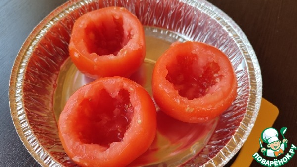 Помидоры помыть, аккуратно отрезать шапочку и вынуть сердцевину.
