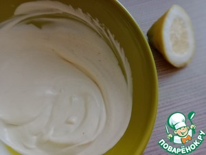 Для заправки смешиваем сметану, горчицу и лимонный сок. Количество ингредиентов можно уменьшать или увеличивать, ориентируясь на вкусовые предпочтения. Заправка получается пикантной, с нотками горчицы, но не острой.