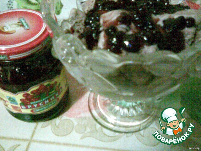 Насмотрелась на шедевры наших поварят и захотелось чего-нибудь вкусненького! В морозилке обнаружились остатки мороженого, и родился этот десертик...