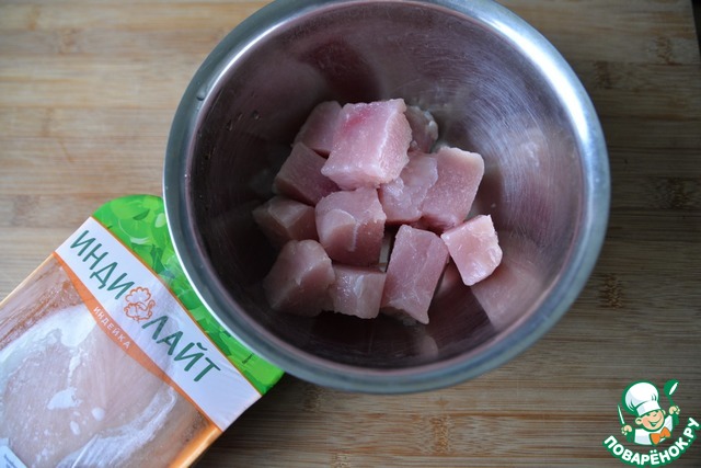 В рецепте время указано без учёта времени для маринования. Берём филе индейки, у меня - филе грудки "Индилайт", можете брать филе бедра.