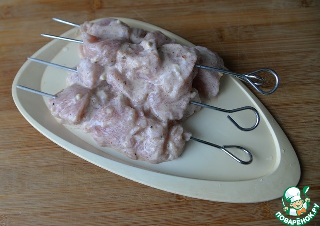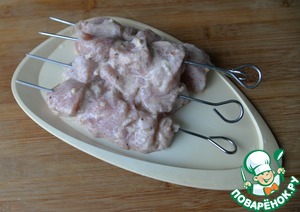 Нанизываем на шампуры маринованное филе. Запекаем на углях на мангале 15-20 минут. Или в духовке, при 200 градусах 30 минут. Периодически поворачиваем шампуры.