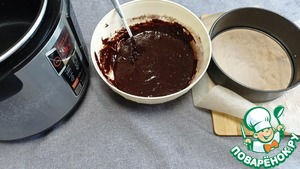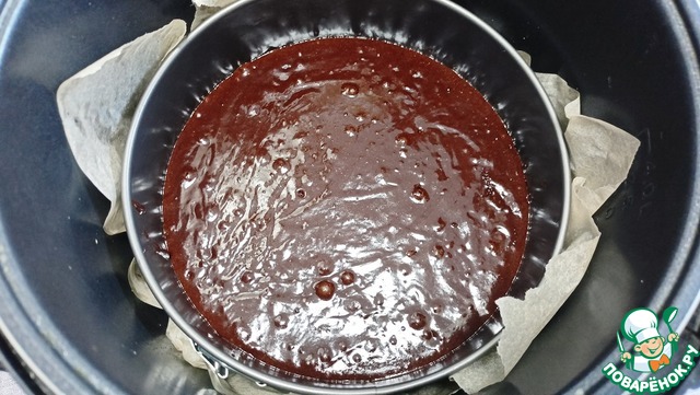Желательно готовить в форме (хотя можно и в чаше). Отправляем наше "тесто" в чашу - Режим «Выпечка» 25 минут.