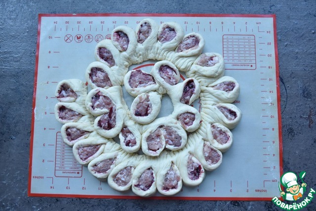 Выпекаю колбасный венок в духовке, разогретой до 200 градусов 20 минут.