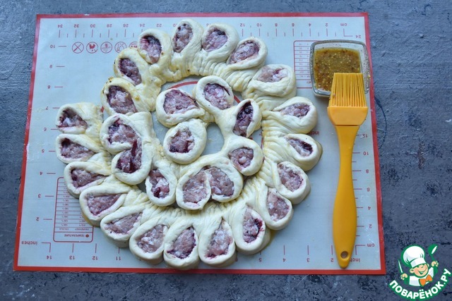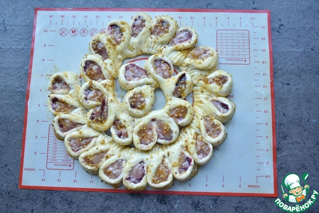 Рецепт «Колбасный венок с медово-горчичной глазурью»: