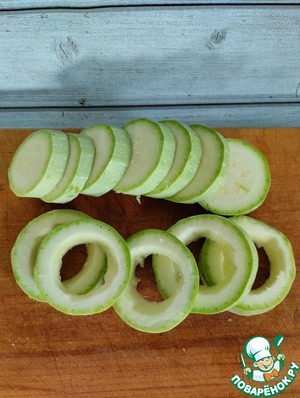 Кабачки моем, нарезаем как на фото и удаляем из них семечки и середину.