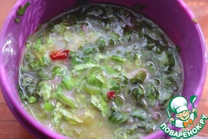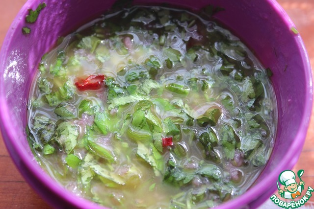 Зелень порезать очень мелко, петрушки больше, чем кинзы или берите зелень по своему вкусу.