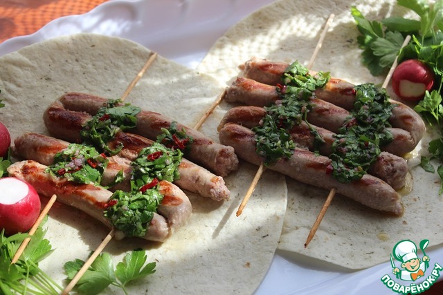 Рецепт «Сосиски-гриль с соусом чимичурри»: