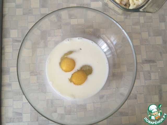В молоко добавить соль, специи и яйца, перемешать до однородности.