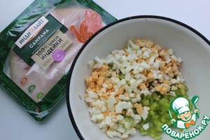 Добавить, порезанное мелким кубиком, яйцо и зеленый перец.