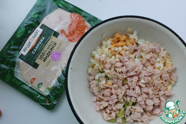 Ингредиенты для «Легкий сочный салат с ветчиной»: